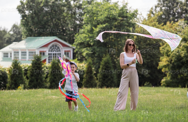 Мать с сыном в парке семейные ценности, досуг с детьми