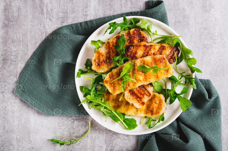 Закройте теплый салат с грилем Halloumi и ругулой на тарелке с видом на верхнюю часть стола