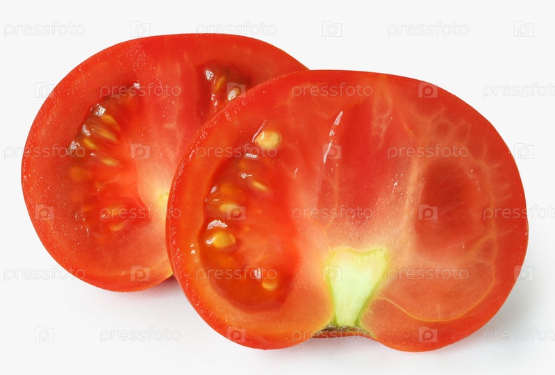 Две половины помидора на белом фоне
