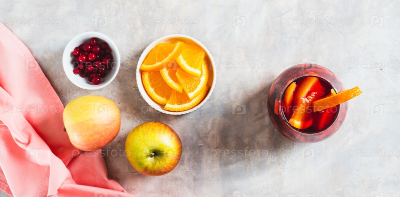 Коктейль из Сангрии с красным вином и фруктами в очках с видом на стол