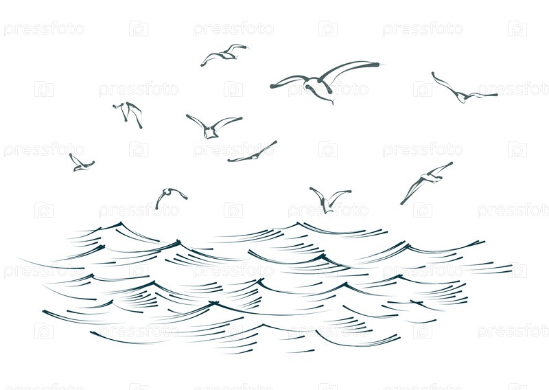 Стая птиц с голубым морем
