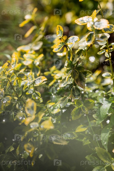 Зелёное фоновое изображение. Естественный, экологически чистый природный фон. Текст зеленых листьев кустарника бересклет (Euonimus)