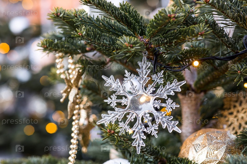 Праздничные игрушки на елке на улицах Москвы. Новогодняя открытка 2026. Прекрасный рождественский фон. Концепция подготовки декораций и декораций к новому году