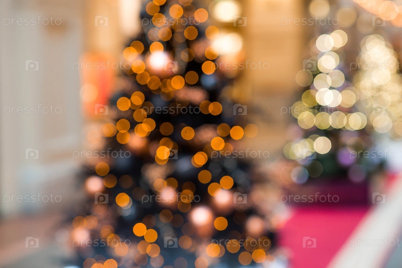 Красивый рождественский фон 2026 года. Абстрактный размытый рождественский фон с гирляндами елки в теплых оттенках