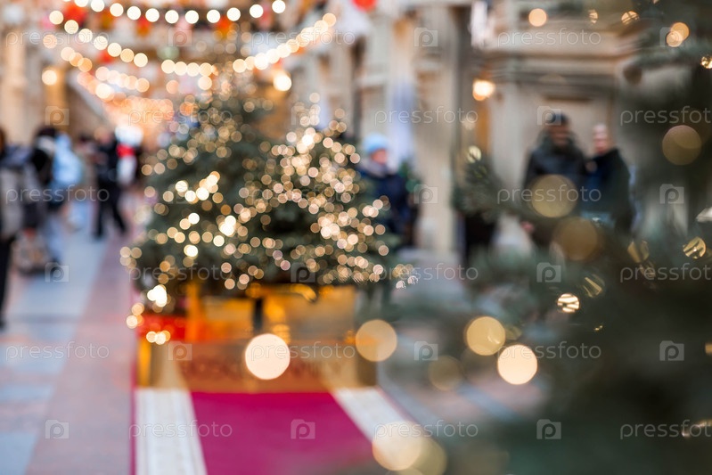 Красивый рождественский фон 2026 года. Абстрактный размытый рождественский фон с гирляндами елки в теплых оттенках