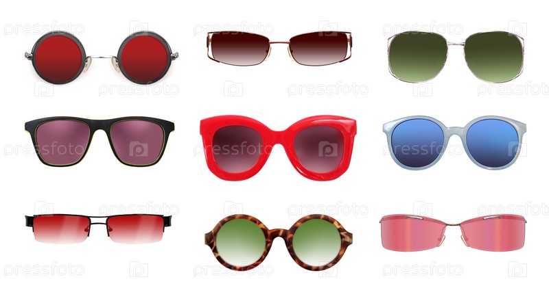 Набор солнцезащитных очков, изолированных на белом фоне для нанесения на портрет