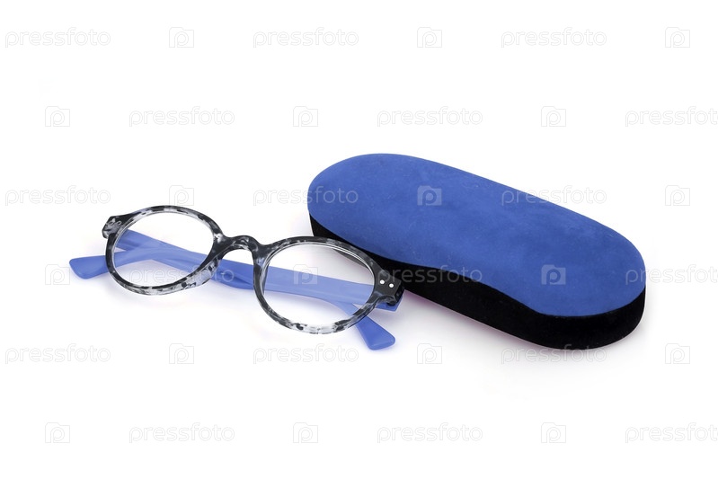 Солнцезащитные очки и футляр для зрелищ изолированы на белом фоне