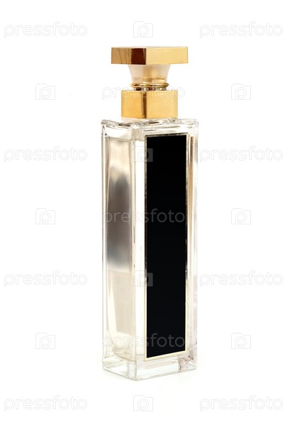 Разложите флакон духов на белом фоне