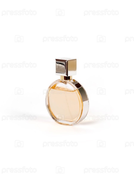 Укладка парфюмерной бутылки изолирована на белом фоне