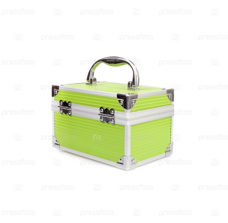 Зеленый металлический чехол красоты изолирован на белом фоне