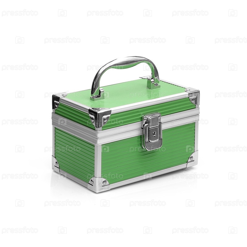 Металлический чехол красоты изолирован на белом фоне