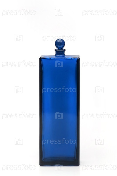 Укладка синей флакон духов изолирована на белом фоне