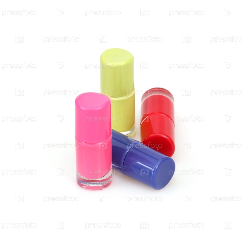 Мокап: бутылки для полировки ногтей изолированы на белом фоне
