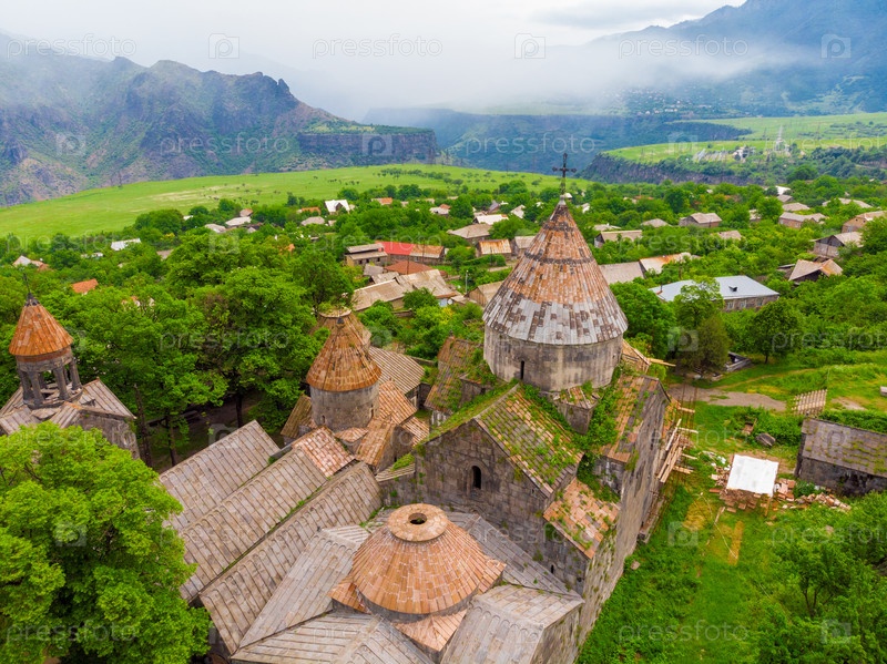 Вид с воздуха на монастырь Санаин и руины, вид Армении