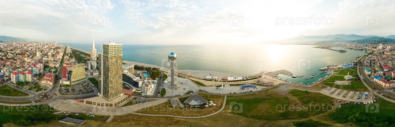 Воздушное панорамное изображение прекрасного Батуми, сделанное с помощью дрона в солнечную летнюю погоду. Батуми является столицей Аджарской Автономной Республики в Грузии
