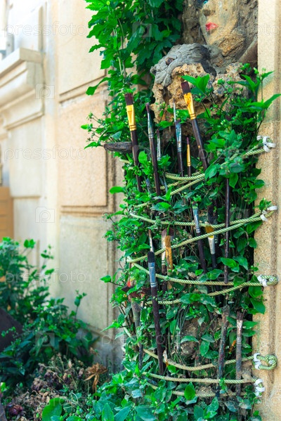 Творческий декор растения и художественные кисти в декоре стен