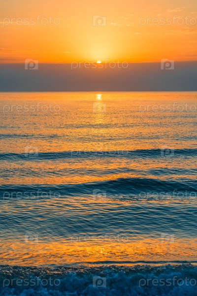 Живописный вид оранжевого заката на морской пейзаж