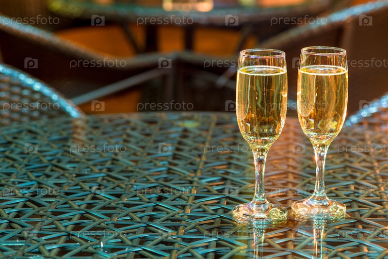 Два бокала с шампанским на столе