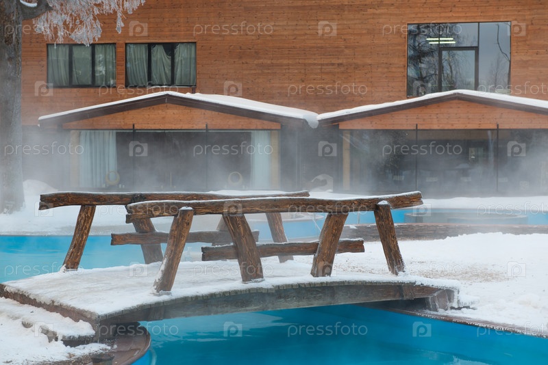 Бассейн под открытым небом с теплой водой зимой