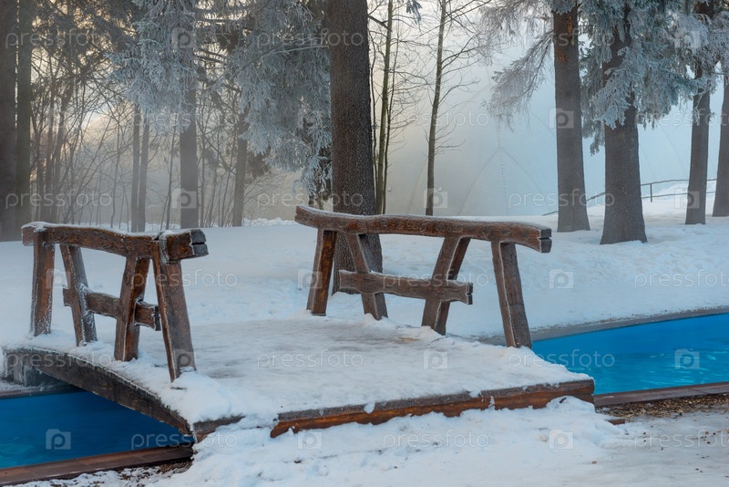 Бассейн под открытым небом с теплой водой зимой