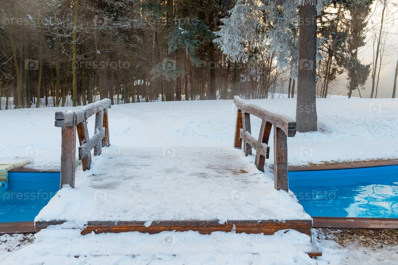 Бассейн под открытым небом с теплой водой зимой