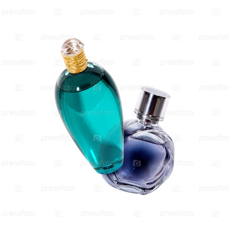 Укладка парфюмерной бутылки изолирована на белом фоне