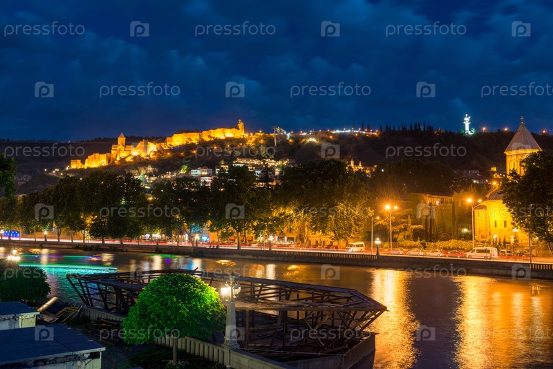 Ночной вид на крепость Нарикала в Тбилиси, Грузия