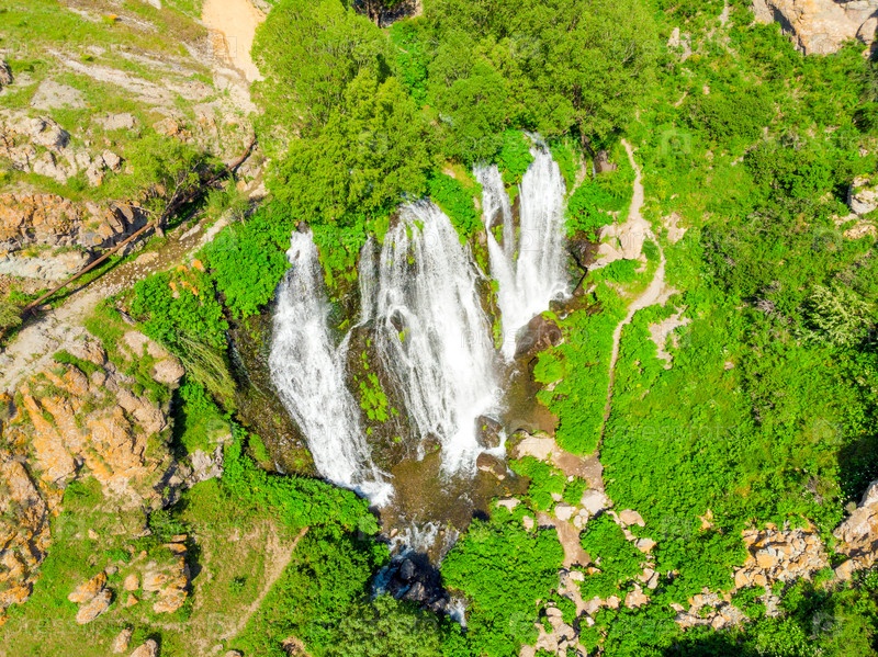 Водопад Шаки, живописный вид в солнечный день - вид сверху, Армения
