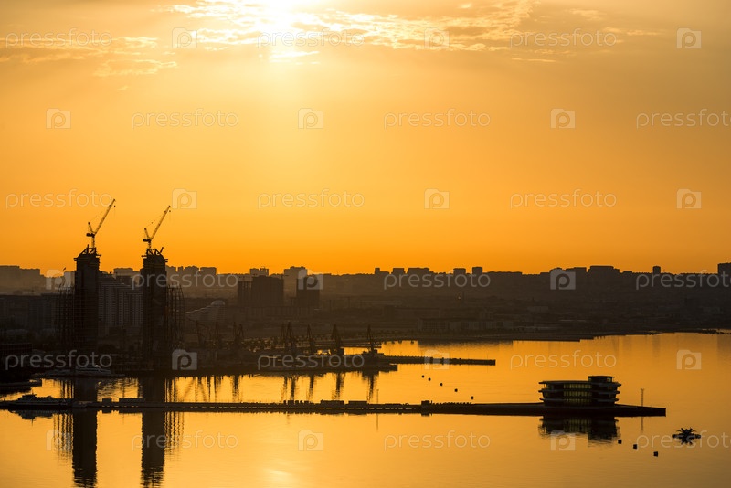 Вид на набережную и порт утром в Баку, Азербайджан