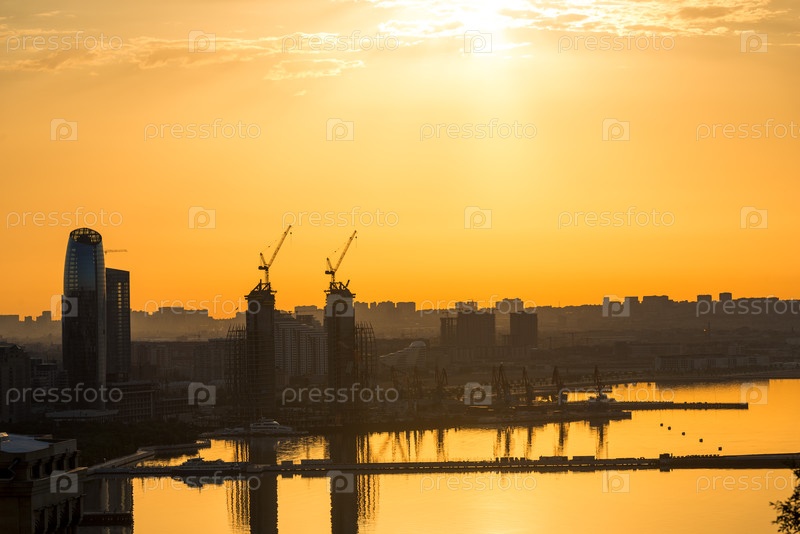 Вид на набережную и порт утром в Баку, Азербайджан