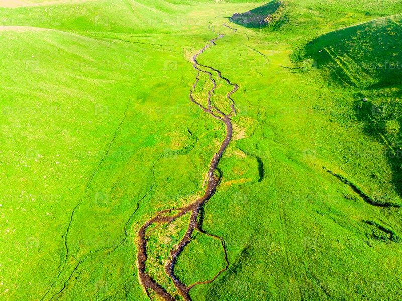 Живописный зеленый пейзаж в Армении, живописный вид в солнечный день в июне