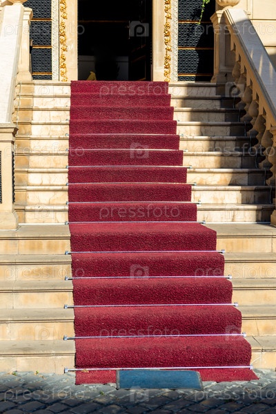 Роскошная благородная красная дорожка на исторической лестнице