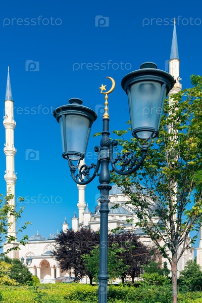 Уличная лампа возле мечети Ахмата Кадырова в Чечне, Грозный, Россия