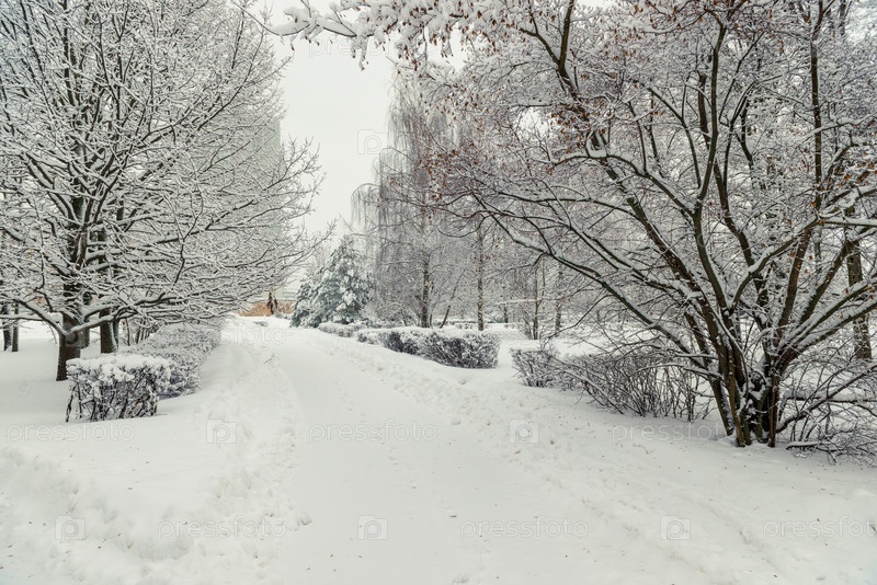 Снежная аллея в зимнем лесу