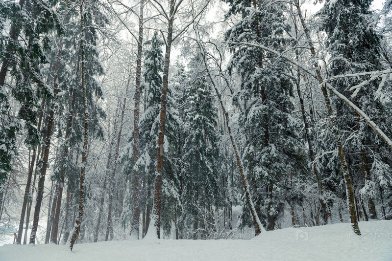 Буря и метель в зимнем лесу. Живописный лесной зимний пейзаж