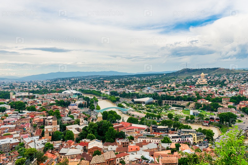 Тбилиси, Грузия. Панорамная красивая картина Городской пейзаж Летнего Старого города