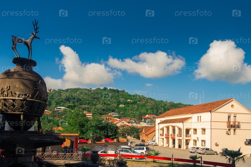 Скульптура кувшином для вина в центре Сигнахи, Грузия
