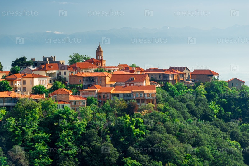 Вид на Сигнаги и долину Алазани, Грузия. Город любви Сигнахи в Грузии, регион Кахетия
