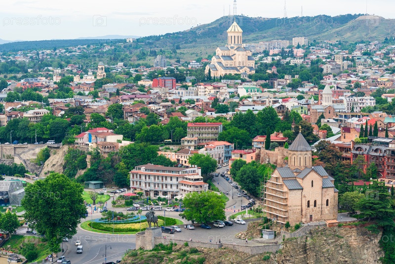 Тбилиси, Грузия. Панорамная красивая картина Городской пейзаж Летнего Старого города