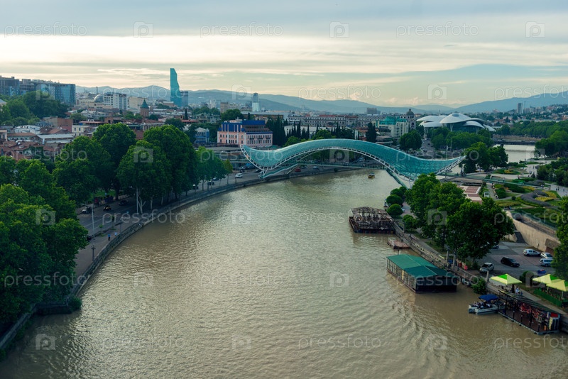 Прекрасный вид на реку Кура и мост мира в Тбилиси, Грузия
