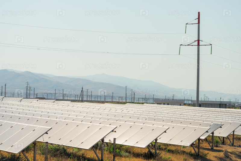 Установлены фотоэлектрические солнечные панели - модули на солнечной электростанции