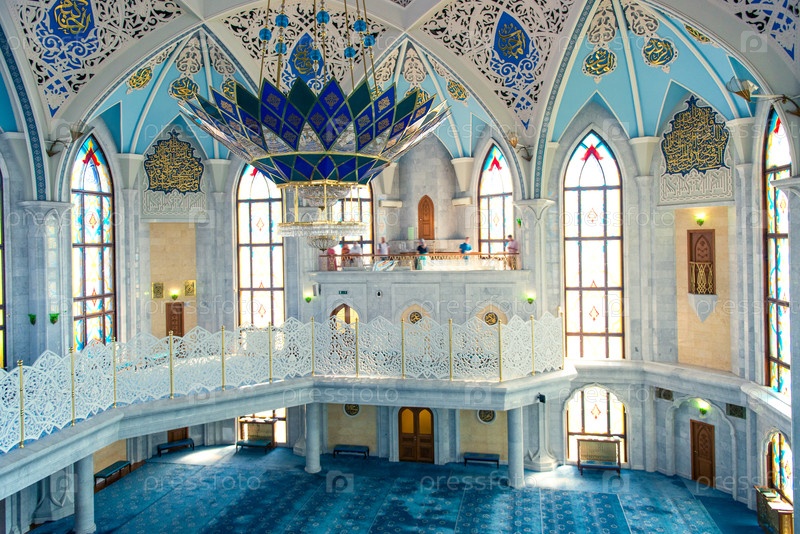 Красивое живописное внутреннее убранство мечети Кул Шариф на территории Казанского Кремля. Россия