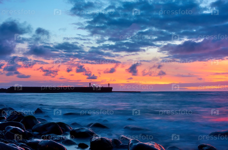 Морской пейзаж с Атлантическим океаном и небом в сумерках