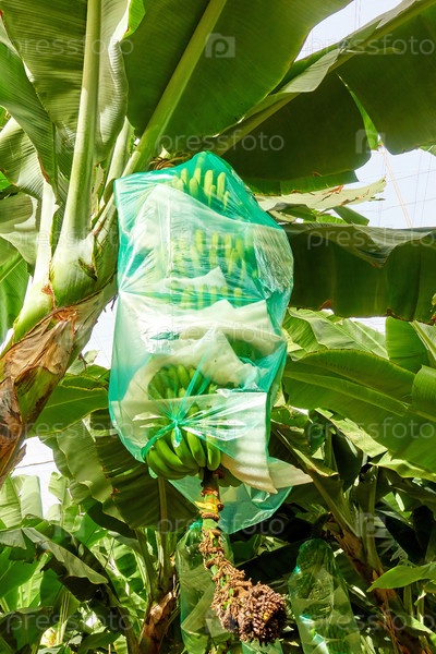 Банановое дерево с завернутыми бананами