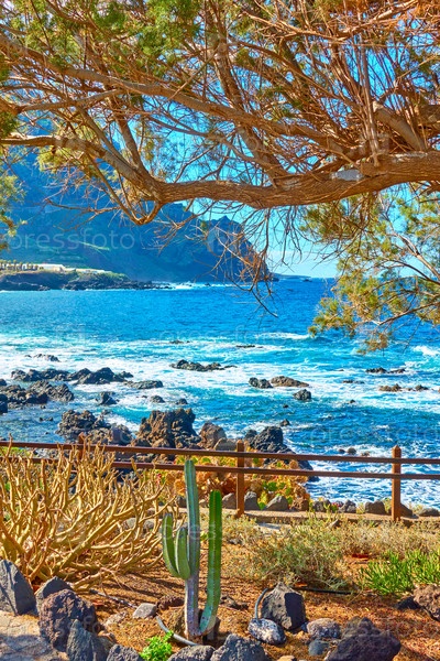 Атлантический океан и растения на побережье Тенерифе