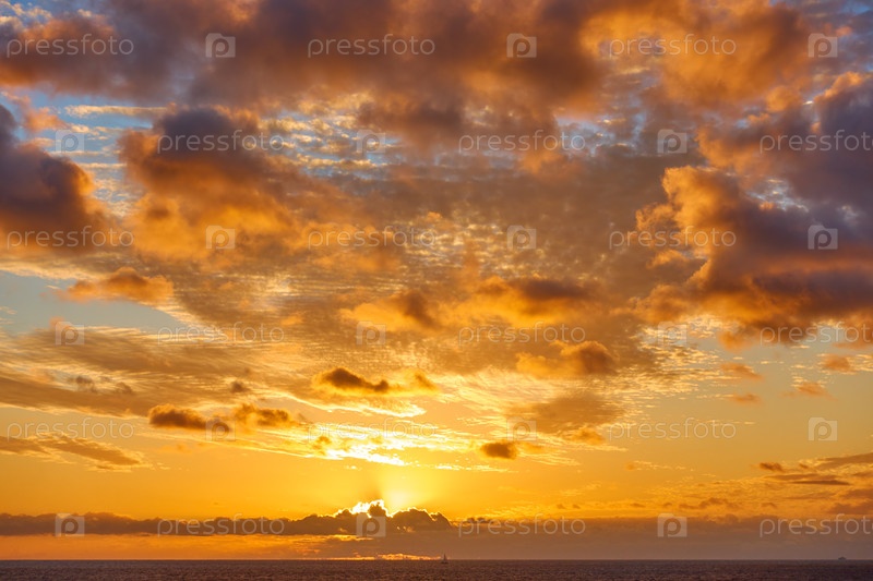 Оранжевые облака в небе над Атлантическим океаном на закате