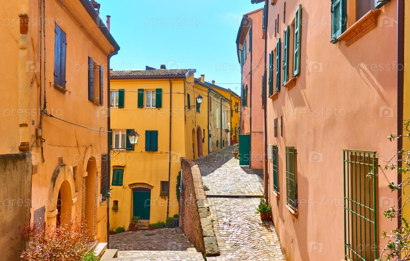 Старые улицы в городе Сантарканджело ди Романья в Италии