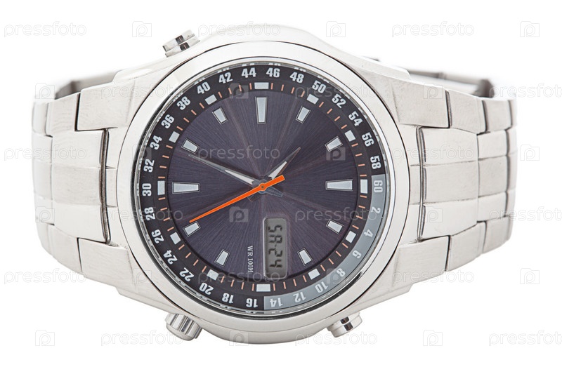 Мужские наручные часы на белом фоне