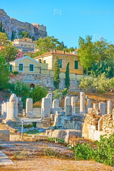 Руины Римского форума и района Плака в Афинах