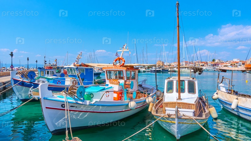Порт Эгина со старыми рыбацкими лодками